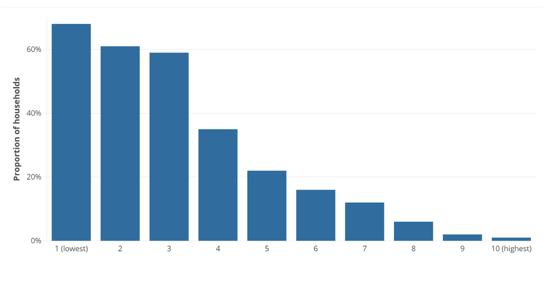 Broadband is increasingly being viewed as a household essential, and household spending data bears this out: across the income distribution, the overwhelming majority of households have a direct internet connection. While lower income households are more likely to have no internet connection, or to rely on mobile only, this still represents a small minority.